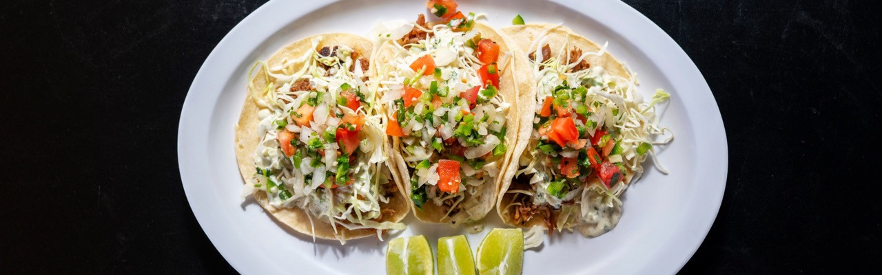 Three house‑smoked pulled pork sliders tossed in sweet BBQ sauce topped with onion rings.